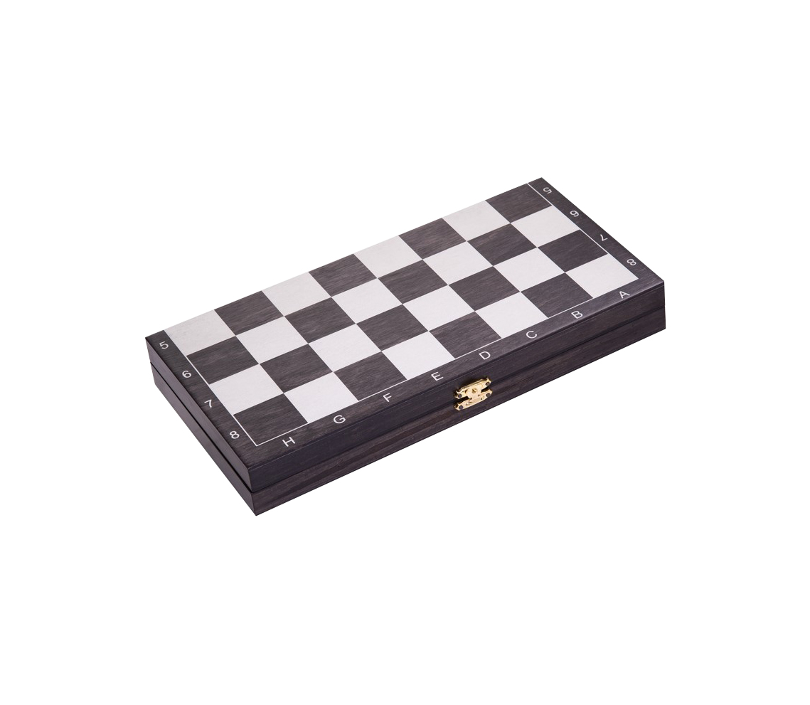 Игра 3в1 дорожная черная, рисунок золото с обиходными деревянными шахматами "Объедовские" (нарды, ша