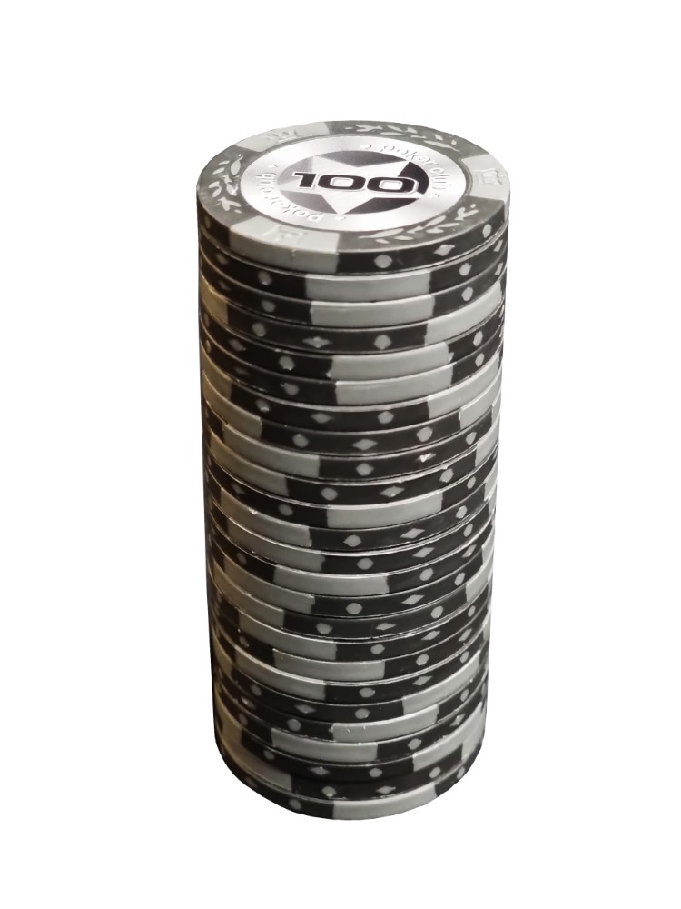 Фишки укомплектованы по 25 штук, их вес варьируется в зависимости от материала изготовления, чаще всего он составляет от 8 до 14 г. Они изготавливаются из пластика, композитного материала, дополняются утяжеляющим металлическим сердечником. Элитные фишки выполнены из керамики.