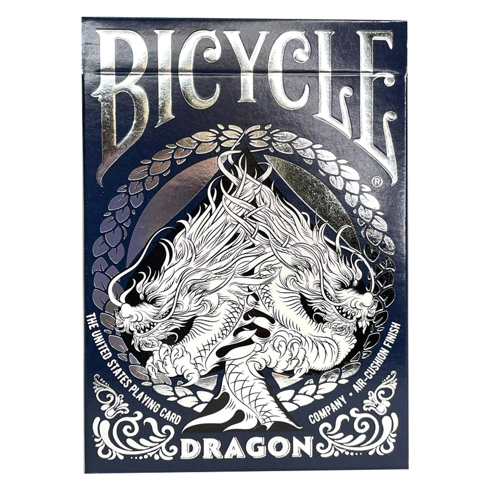 «Карты «Bicycle Dragon Premium» – премиальная колода, оформленная в стиле фэнтези. Материалом производства служит картон, покрытый тонким слоем пластика, что позволяет гарантировать долгий срок службы и сохранность изделия даже после 1000 часов использования. Основной тематикой здесь выступают драконы, которые находятся на каждой рубашке. Художнику удалось добиться отличного внешнего вида, при этом сочетая 4 цвета: