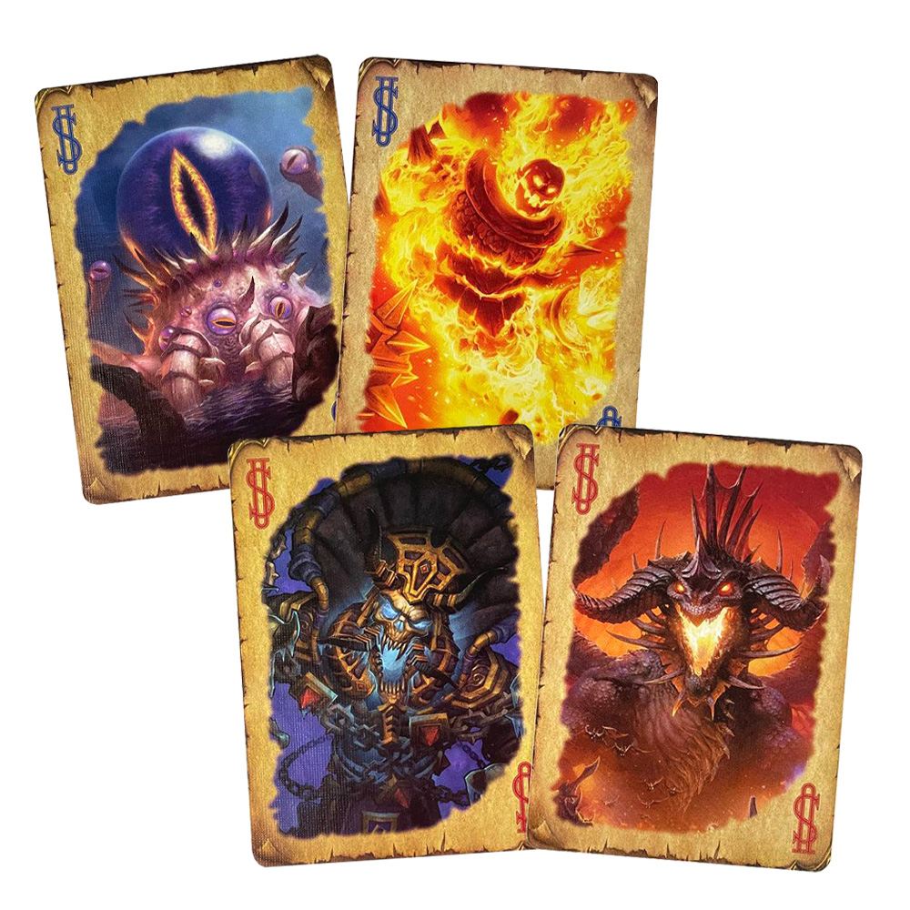 Специально разработанные кортовые карты и корешки карт, вдохновленные культовой многопользовательской онлайн-видеоигрой World of Warcraft первого издания.