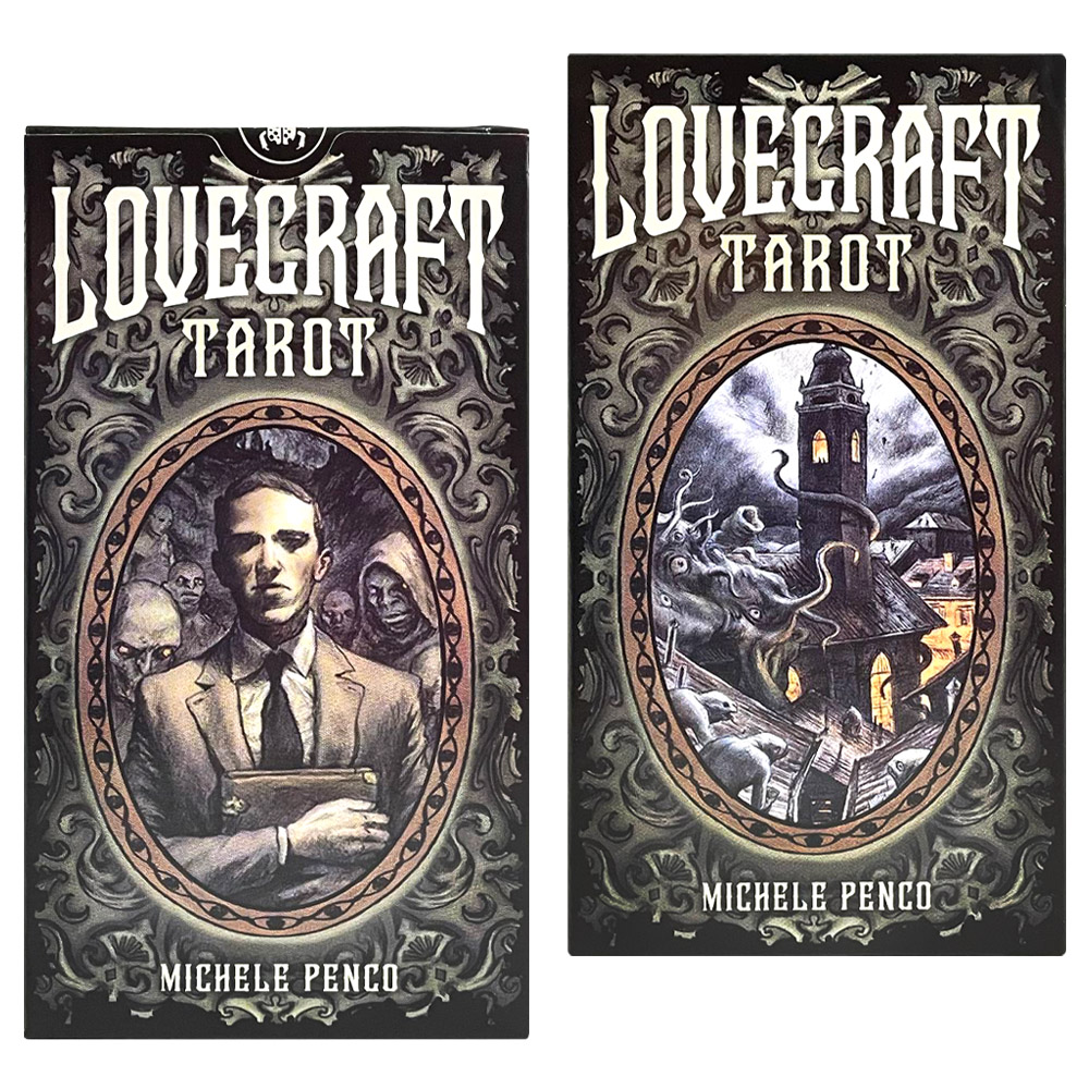 «Карты Таро: «Alligo/Minetti/Penco Dark Grimoire Tarot» - прошлое, настоящее и будущее будет открыто. Все 3 автора этой колоды руководствовались текстами Некрономикона, из которых складывались образы. Изобразить их удалось художнику Michele Penco, причём сделано это с вниманием к деталям, большое количество которых скрыто на каждой картинке. Рисунки получились тёмными и мистическими, как и подобает тёмному Таро.
