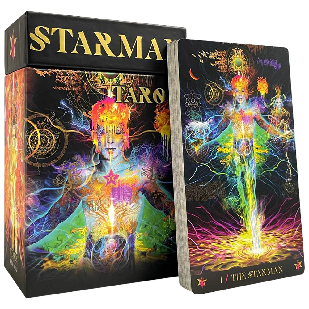 Карты Starman созданы на основе знаменитого сингла с главным героем Зигги Стардастом. Уникальные карты Таро несут смысл жизни от начала до самого конца. В каждой иллюстрации певец Дэвид Боуи оставил свою частичку. Творческие карты могут стать вашим вдохновением во время поиска нужных ответов. Сложная, но при этом богатая картина позволяет смешанным традициям объединиться воедино. Карты относятся к оккультной категории. Они помогают исследовать реальность. С такими картами даже новички без затруднений смогут справиться. И поможет им подробная инструкция, которая входит в комплекте вместе с красочными картами.