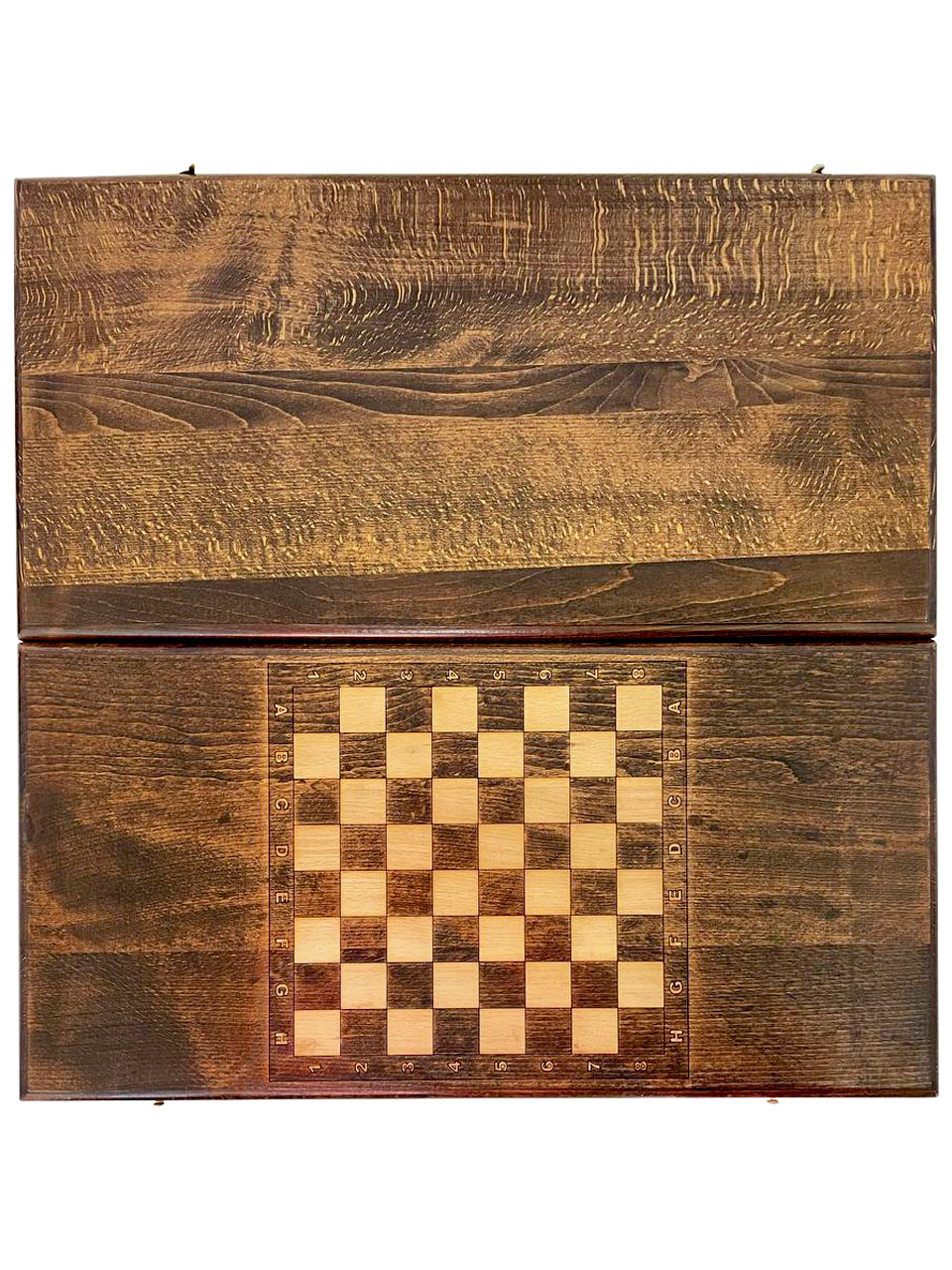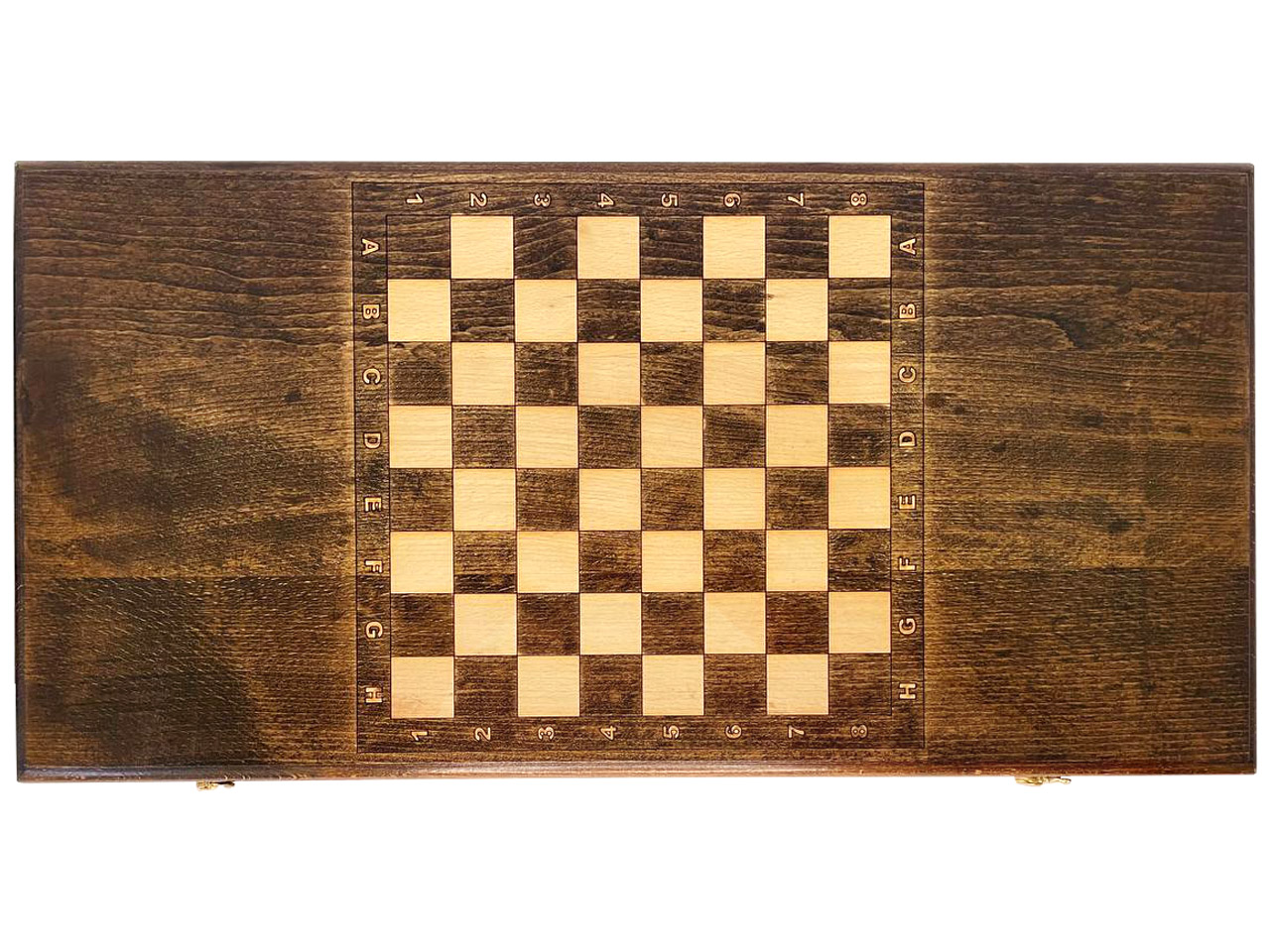 Лицевая поверхность лишена всяческих декоративных элементов - только текстура древесины, подчеркнутая лакированным покрытием. С обратной стороны нанесено шашечное поле, за которым вы сможете отвлечься от напряженных партий. Приобретать что-то дополнительно не потребуется, ведь в комплекте уже есть полный набор фишек, подходящих под нарды и шашки. Также имеется бархатный чехол, в который стоит упаковывать изделие, если не планируется играть в ближайшее время - он не позволит пыли и грязи испортить внешнюю красоту. Он удобен и при перевозке, где автомобильная тряска может привести к поломке, а мягкая ткань чехла не даст этому произойти.