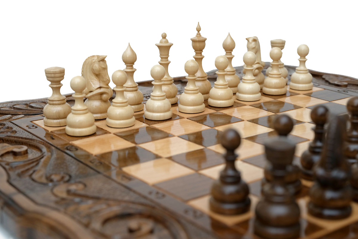 Шахматы + нарды резные "Корона" 60, Haleyan