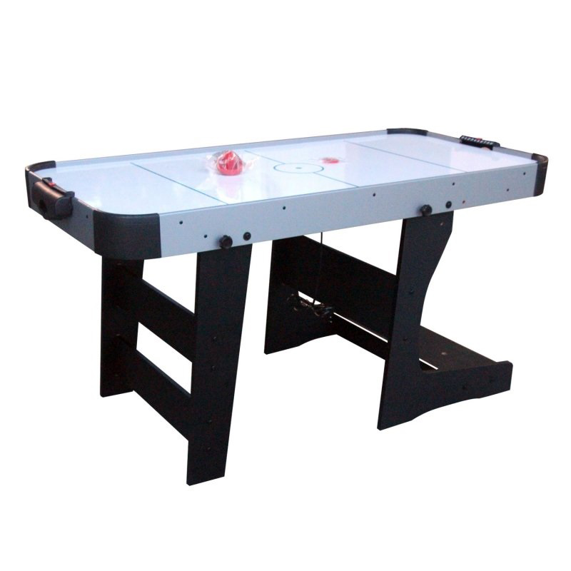 В каталоге есть детский компактный настольный аэрохоккей, модели со складными ножками и комплектом аксессуаров. Он считается одной из самых увлекательных настольных игр для детей всех возрастов, так как не требует специализированных навыков, дарит положительные эмоции, развивает ловкость, внимание и координацию движений.