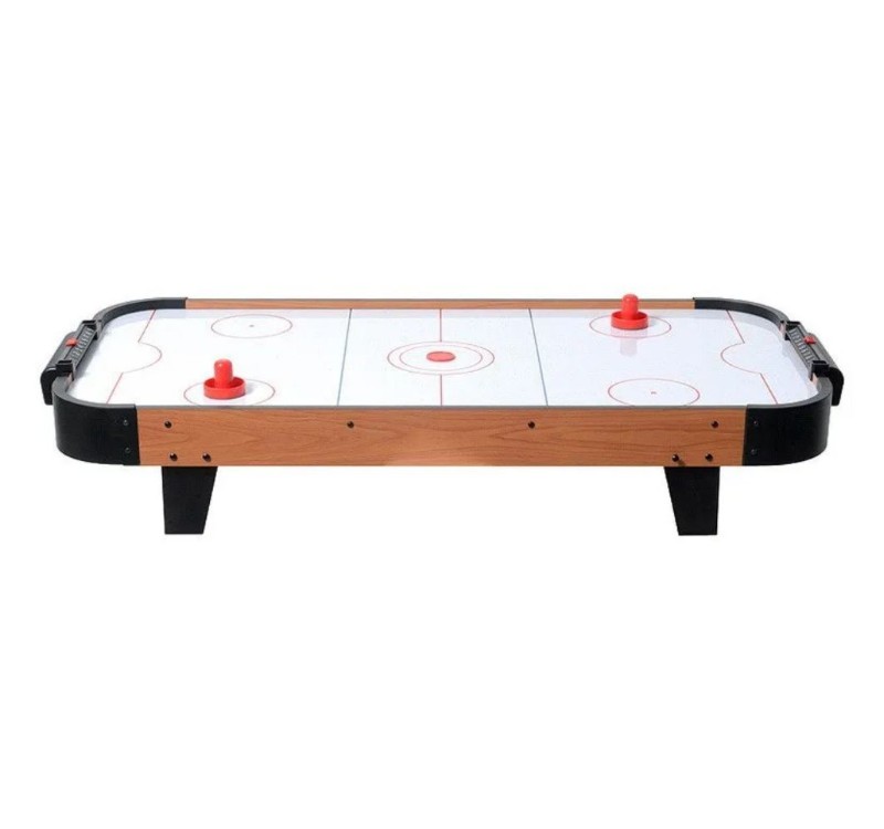 Взрослым подходят стационарные модели для домашнего использования, высота которых составляет 80-95 см. Каркас аэрохоккея может быть изготовлен из пластика, металла или МДФ. Игровое поле обычно имеет покрытие из ламината или нержавеющей стали. Аэрохоккей работает при подключении блока питания к сети 220 В. Дополнительно могут быть предусмотрены звуковые эффекты, подсветка и цифровое табло.
