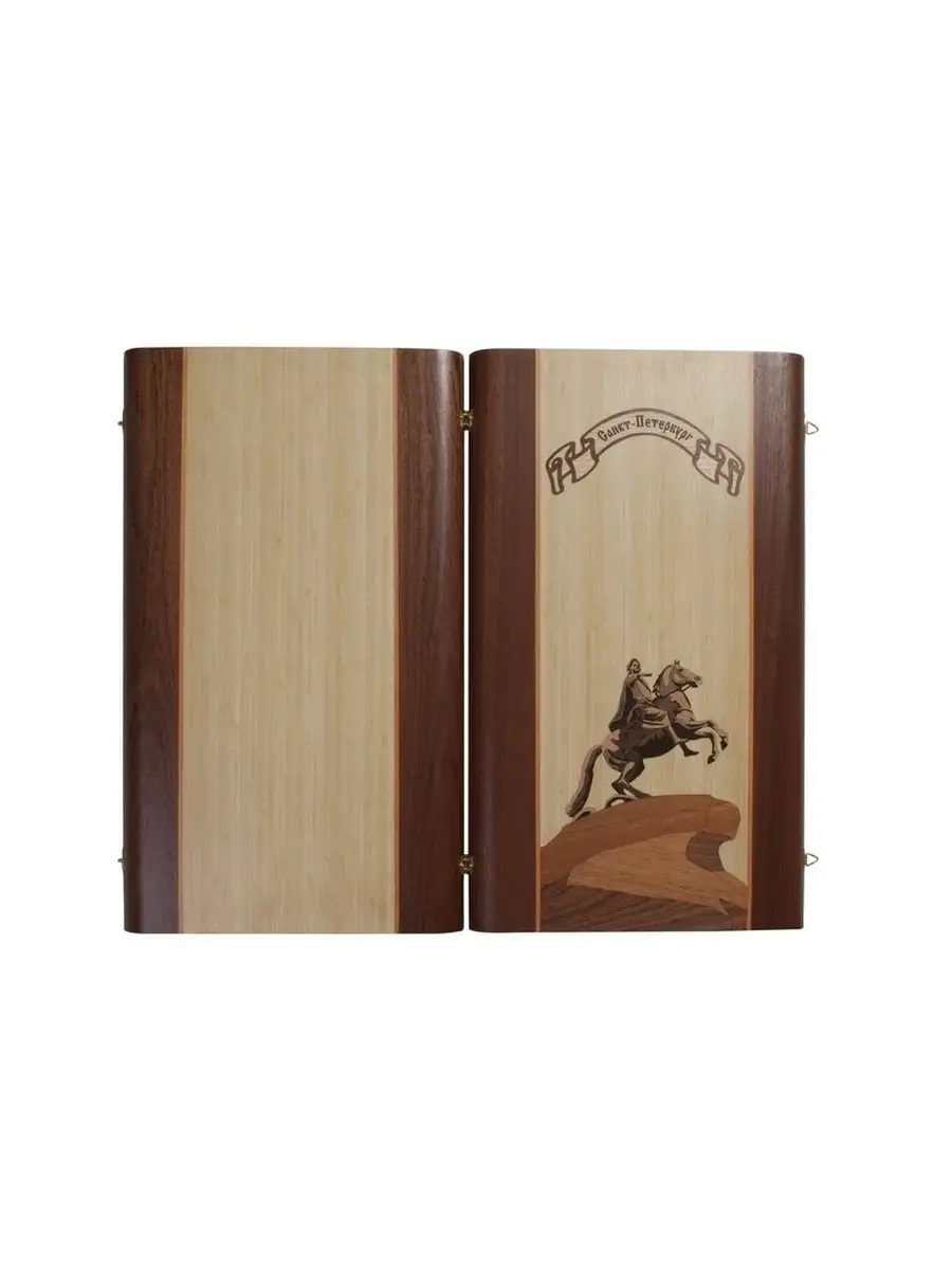 Нарды Ивановские «Пётр Первый» - коллекционное издание игры. Доска выполнена из массива бука. Её внешняя сторона украшена изображением знаменитого Медного всадника, которое по цвету прекрасно сочетается с обрамлением из тёмного дерева.