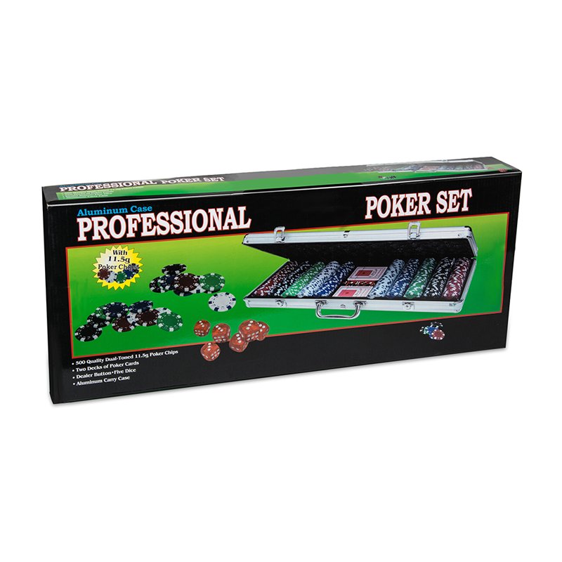 В набор входят: фишка дилера, 500 фишек общим номиналом 93 000, 2 колоды карт, 5 костей игральных, а также подрезная карта Gamesdealer Cut Card.