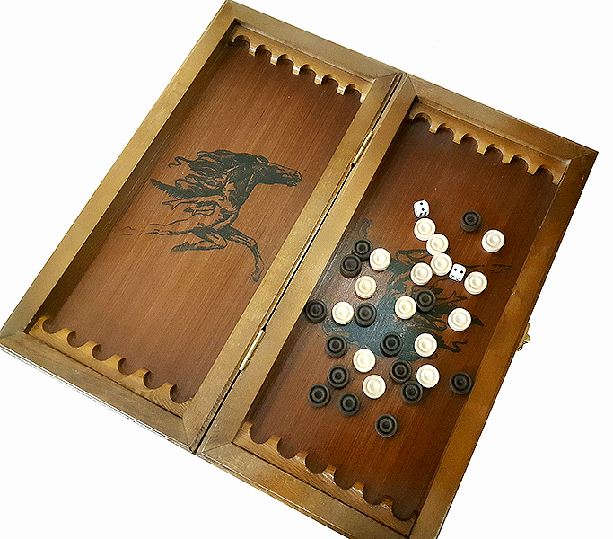 Нарды кожаные "Бронза" малые (Россия, дерево, 40х20х5 см)
