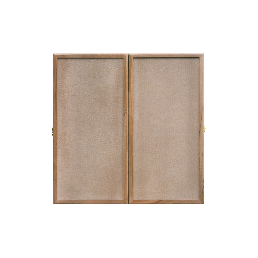 Эффектные вставки из кожи добавляют изделию уникальности и точно будут привлекать внимание. Нарды кожаные Шарм «Кобра» выполнены в спокойном цвете, благодаря чему не кричат о своей красоте, но всё-таки ей обладают. Внутри обе створки украшены узорами в центральных частях и каплевидными рисунками у каждого слота для фишек. Створки удерживаются с помощью металлических петель, что гарантирует надёжное сцепление.