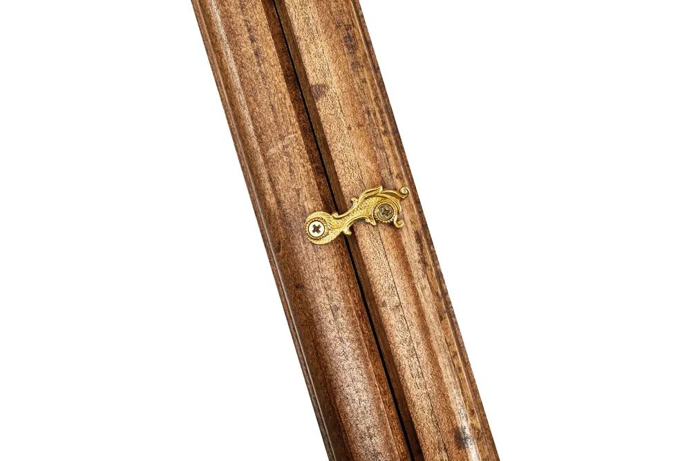 Доска для защиты от потертостей покрыта глянцевым лаком, который также подчеркивает фактуру древесины. Скрепляет части доски медная фурнитура, устойчивая к износу.