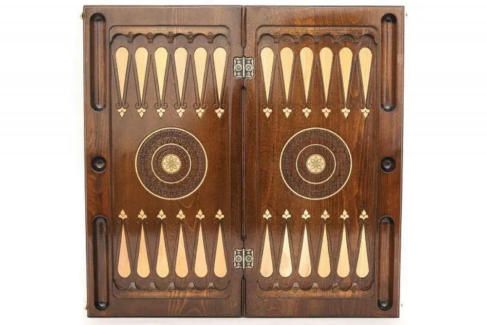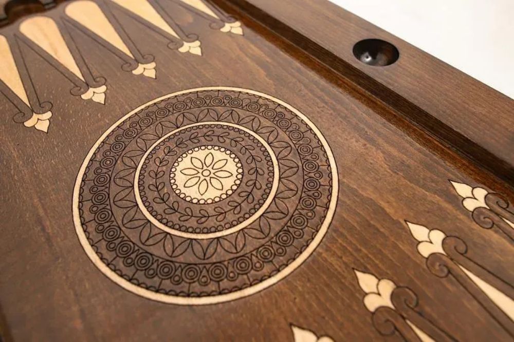 Внешнему виду ничуть не уступает качество комплекта. Настоящая древесина бука, покрытая тонким слоем глянцевого лака, медные петли – то, что обеспечивает доске долговечность. Образование царапин предотвращают бархатные подложки на каждой фишке.