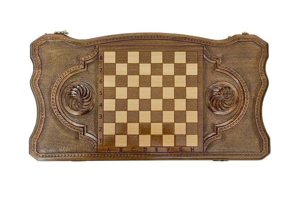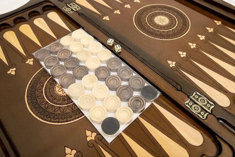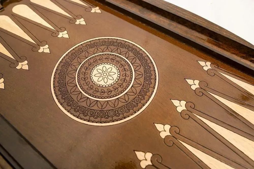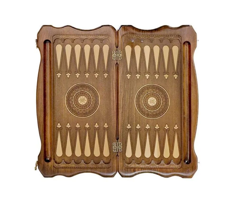 Доска оснащена высококачественной фурнитурой из меди и покрыта защитным лаком. От царапин ее также защищают мягкие подложки, прикрепленные к каждой фишке.