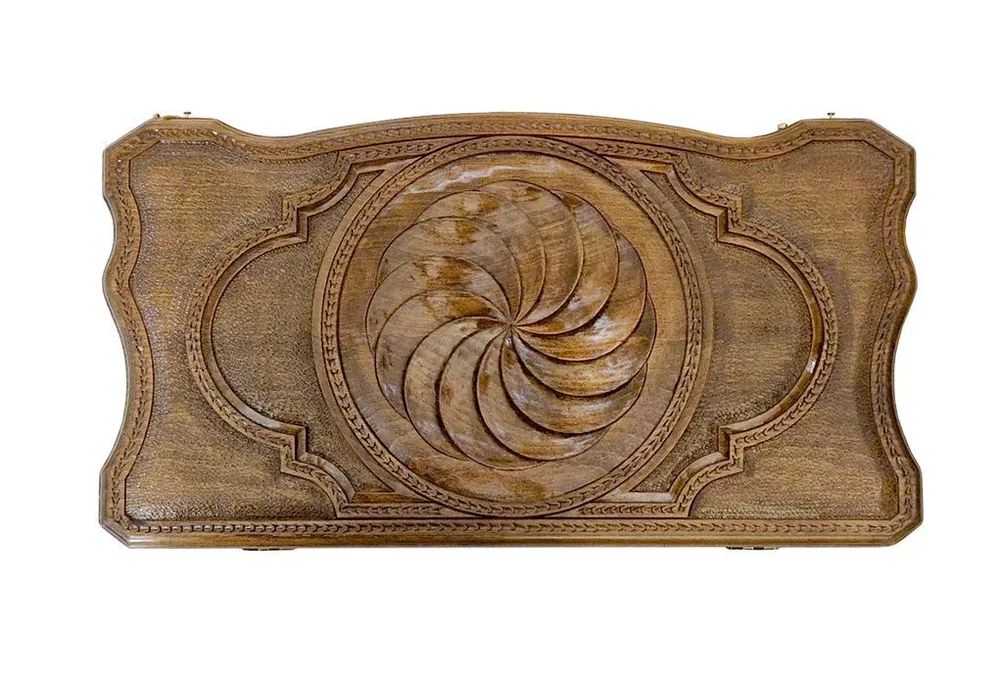 Подарочные нарды «Бесконечность», изготовленные из благородной буковой древесины – один из самых необычных наборов этой классической настольной игры. Изделие выполнено известным мастером с невероятной точностью и детализацией. Знак бесконечности, изображенный на крышке, не только красив, но и имеет приятную фактуру. В этой же концепции выполнено и оформление внутренней стороны доски, отведенной под нардовое поле. Также на задней крышке нанесено поле для шашек.