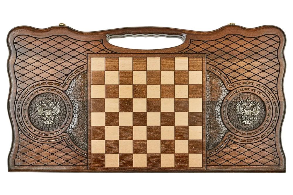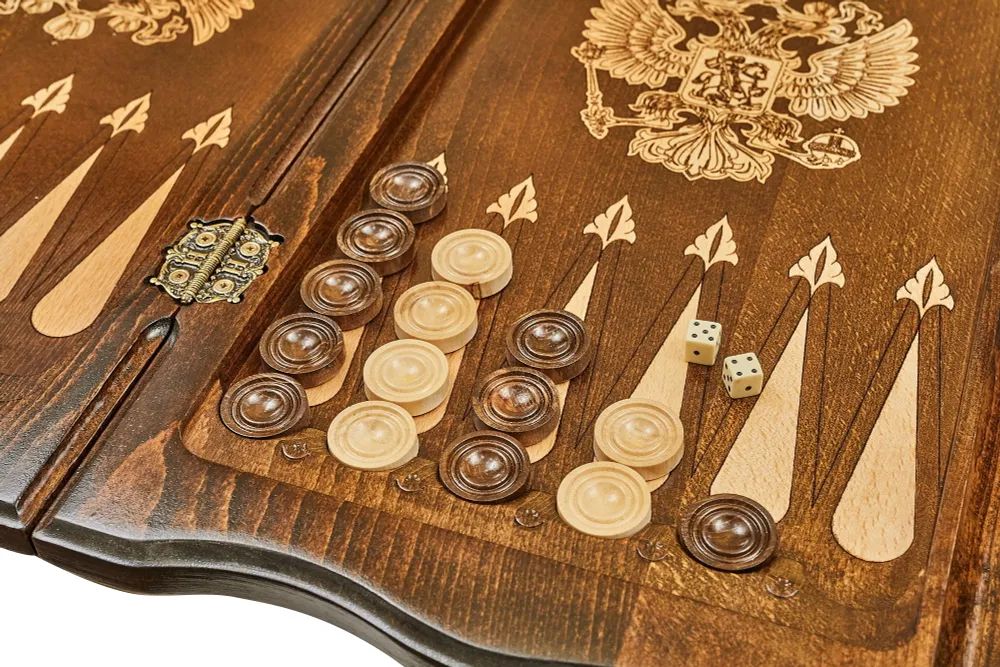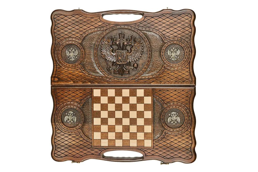 Нарды резные "Герб РФ 3" с бронзой 60, Haleyan