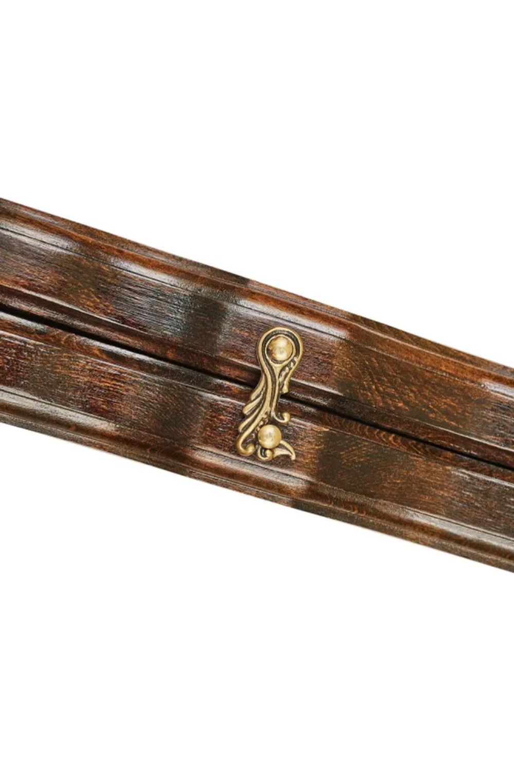 Доска, сделанная из буковой древесины, покрыта защитным глянцевым лаком. Он защищает от потертостей и царапин. Части доски скреплены между собой медной фурнитурой - износостойкой и долговечной даже при активной эксплуатации.