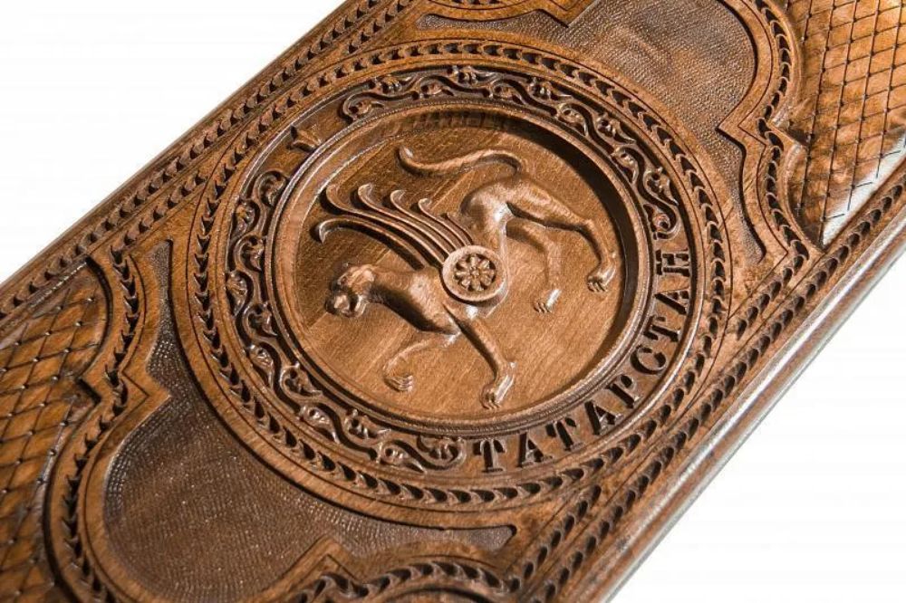 Верхняя внешняя часть доски украшена резным изображением герба Татарстана, а на нижней внешней части нанесено поле для игры в шахматы или шашки. Внутренняя часть доски полностью отведена под поле для нард, украшенное красивыми узорами.