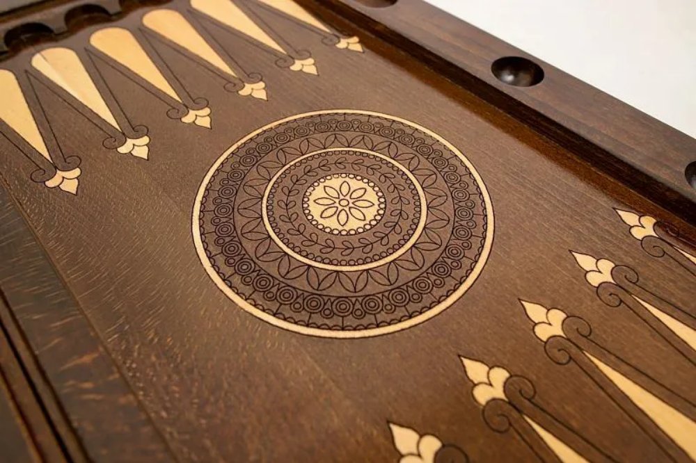 Доска покрыта тонким слоем защитного глянцевого лака. Царапание ее поверхности предотвращает мягкая подложка на каждой фишке. Медная фурнитура, которой дополнена доска – лучшее решение, чтобы сделать ее долговечной.