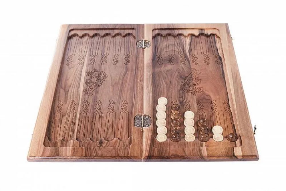 Нарды резные "Орнамент 3" с цельным рисунком, Mkhitaryan