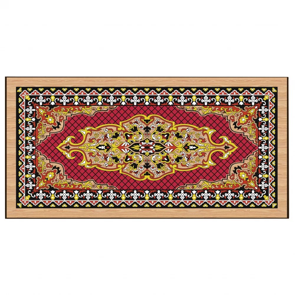 Нарды “Сирия Красные” большие выполнены в традиционном восточном стиле: доску украшает геометрический орнамент с крупным узором в центре и обрамлением по краям. В композиции преобладает красный цвет, символизирующий жизнь и любовь.