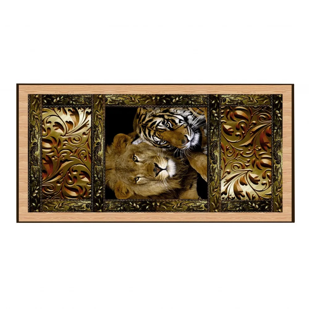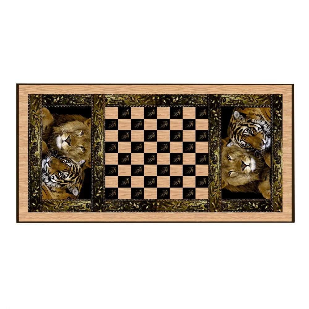 Недорогие нарды, выдержанные в сирийской тематике, представлены на данной странице нашего каталога. Они изготовлены российской компанией, называются «Сирия Львы» и представляют собой двойной комплект, позволяющий также играть в шашки. Для этого на одной из створок короба снаружи нанесена разметка квадратного поля для этой игры. Это поле заключено в орнаментальную рамку и окружено изображениями льва и тигра - в таких же рамках. Увеличенная копия этих изображений помещена на другую створку короба. Принты нанесены на древесину методом шелкографии и выдержаны в древесно-песочной гамме.