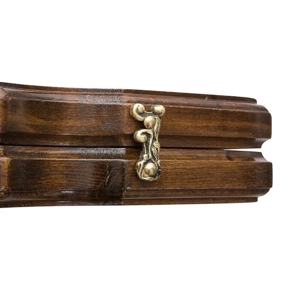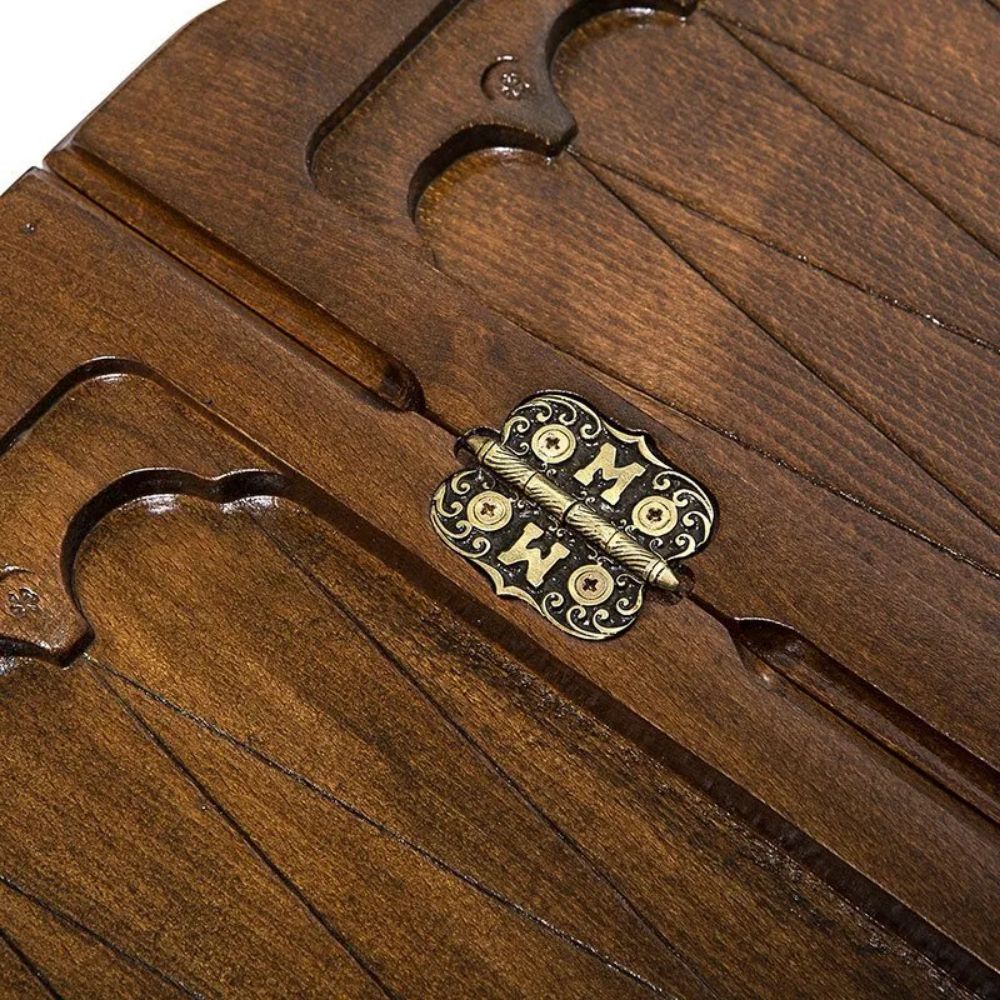 Петли, удерживающие створки между собой, и крючки делаются из бронзы, которая известна своей мягкостью. Именно это свойство гарантирует, что даже после сотни открытий доски, все будет работать так, как и сразу после покупки.