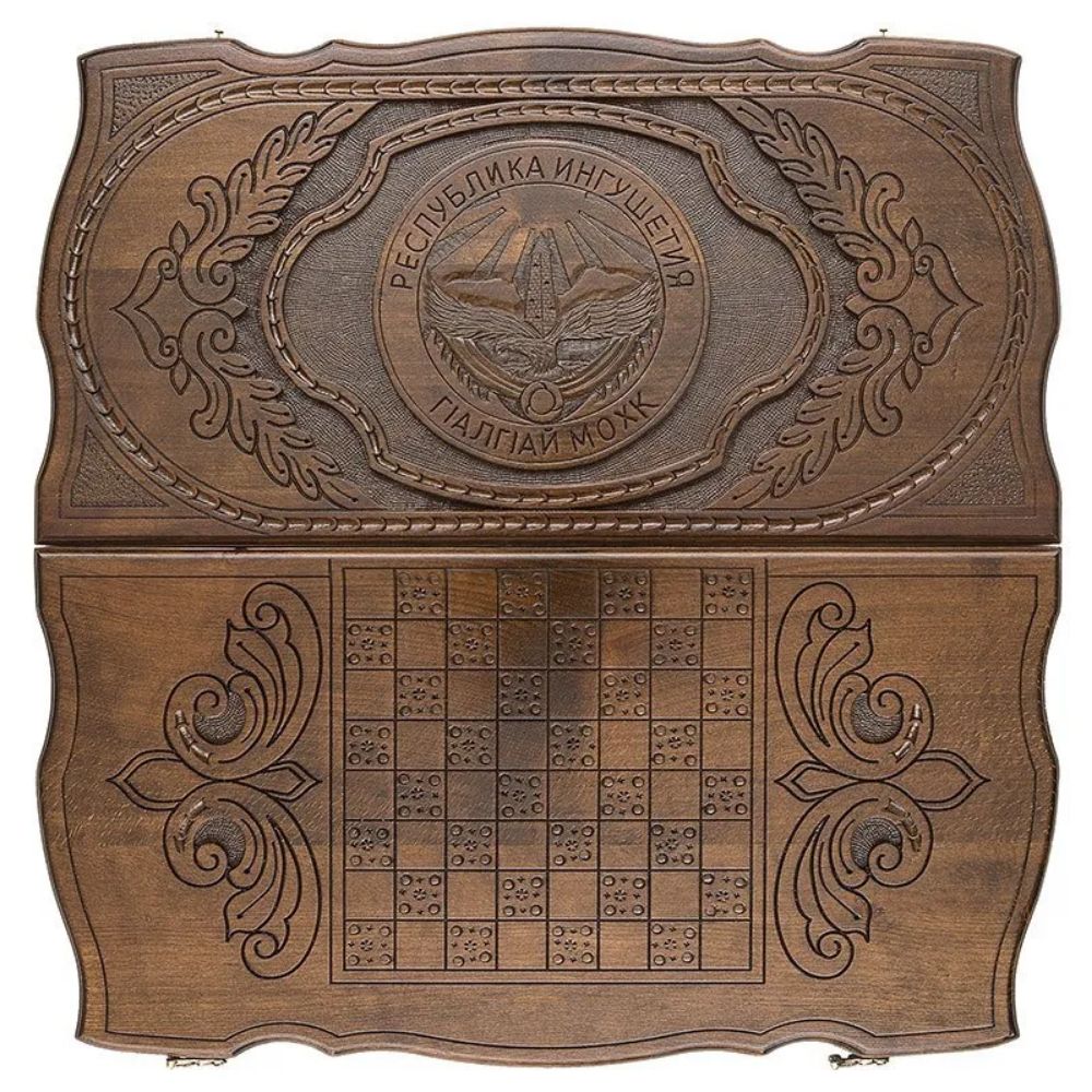 Нарды появились более 2 тысяч лет назад и сразу же стали популярными среди знати. Высокопоставленные проводили за ними многие часы, отвлекаясь от напряженного управления государством. Лишь спустя десятилетия игра стала доступной простому люду, который также оценил ее по достоинству. Сегодня же, они известны по всему миру, а в странах Востока и Индии по ним даже проводятся соревнования. Вы можете стать частью этой Вселенной, купив Нарды резные Герб Ингушетии от известного мастера из Азербайджана - Магомеда Расулова.