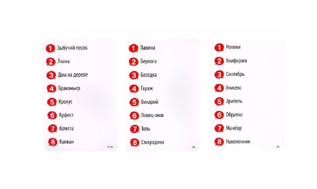 Причём время на донесение информации ограничено песочными часами, которые неумолимо пустеют. Хотя никто не запретит отказаться от этого ограничения и хоть сутками пытаться объяснять и показывать что-то. А можно добавить себе сложности и заставить ведущего во время своих объяснений выполнять какие-то действия или издавать звуки, ведь так смешнее.