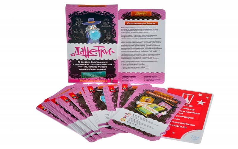 Данетки давно завоевали популярность среди тех, кто любит разгадывать загадки, пользоваться своей дедукцией, выстраивать последовательности действий. Эту игру вполне можно назвать детективом в коробочки, причем тут не 1, а целых 40 историй, каждая из которых не похожа на другую. В отличие от других версий Данетки, здесь все сделано в упрощенном варианте, чтобы даже малышам было интересно.