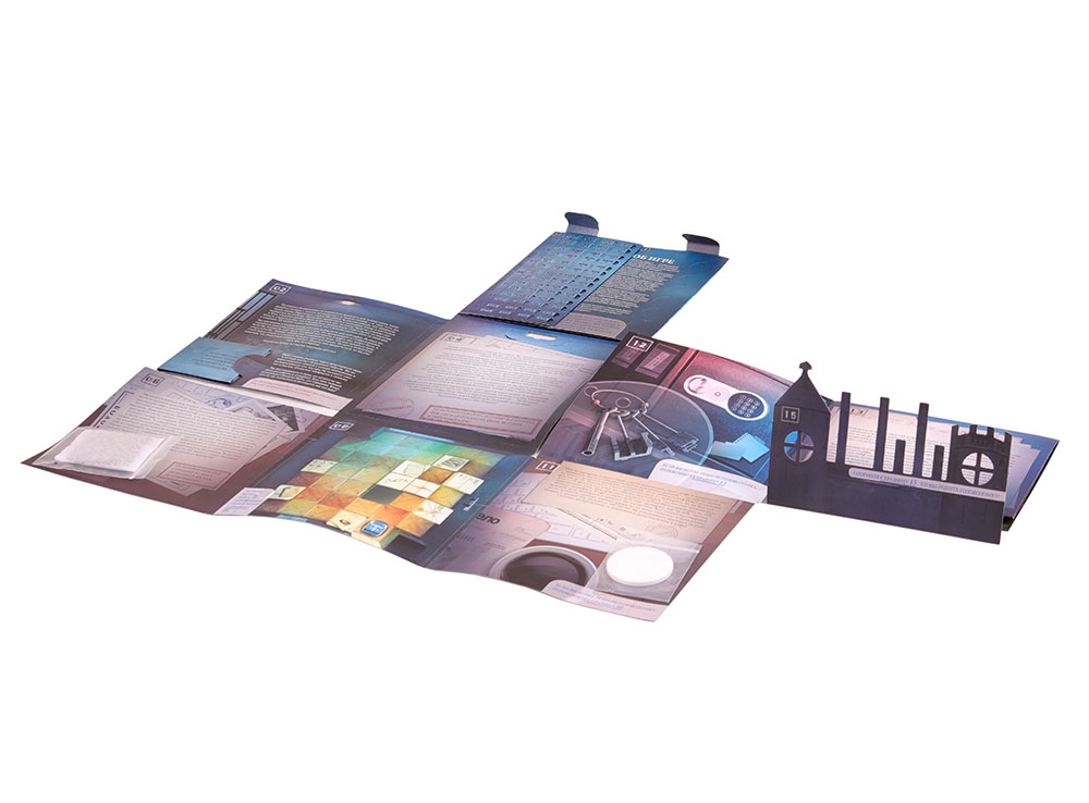 Внутри коробки находится специальный конверт, в котором каждая страница представляет собой отдельные задания. Они разнообразные и задействуют разные умения, знания, например: