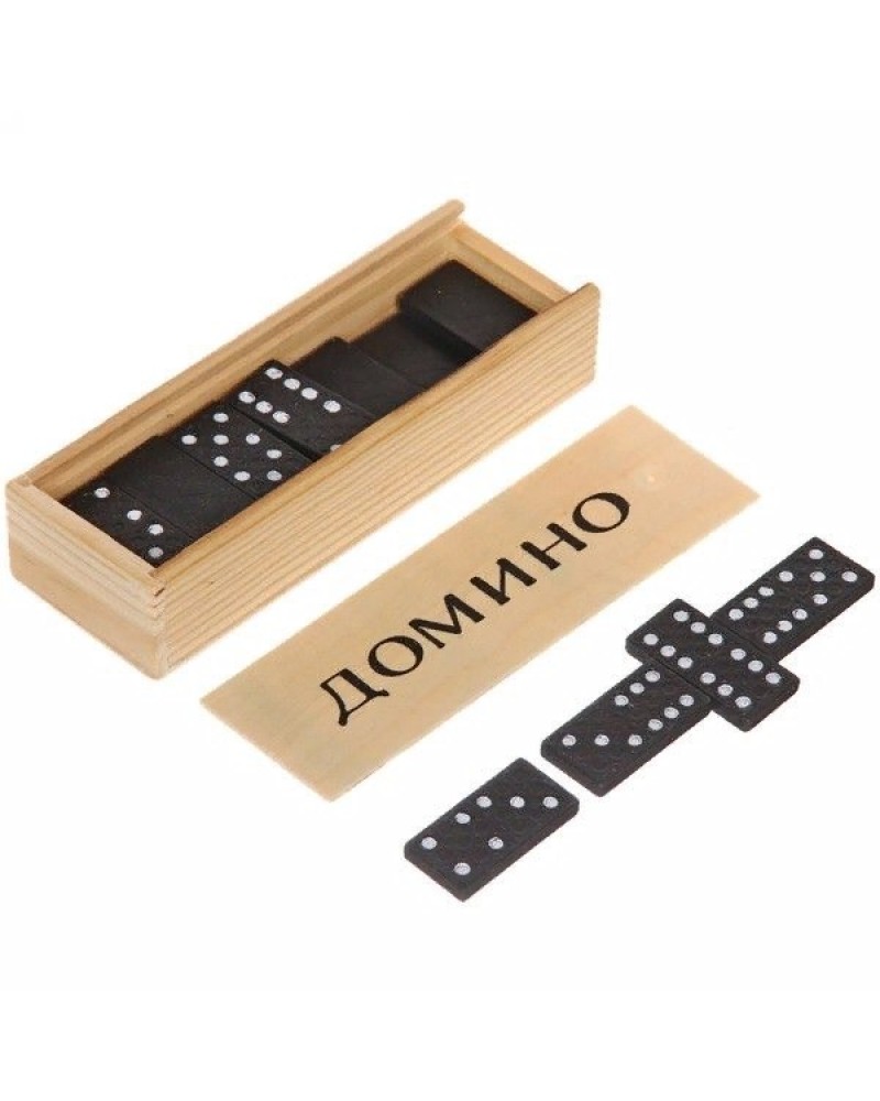 Домино (пластиковые фишки) в деревянной коробке 14x5 см