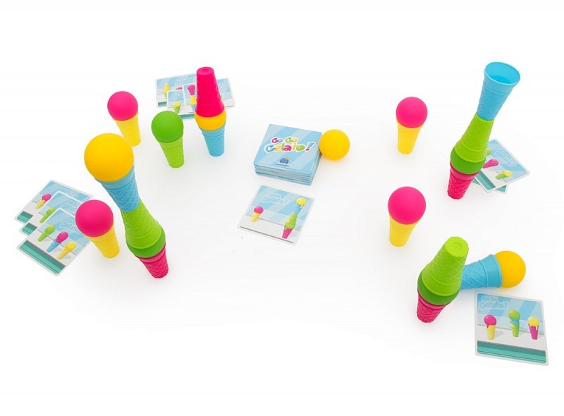 - 12 шариков мороженого (4 зелёных, 4 розовых, 4 жёлтых)