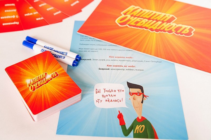 Капитан Очевидность становится намного интереснее, когда в нем участвует сразу много человек, например - 10. Вначале все карточки перемешиваются и выкладываются в центр стола. После этого первый игрок вытаскивает верхнюю карту, на которой написаны четыре слова, так, чтобы все игроки могли их четко видеть. Теперь участникам предстоит придумывать ассоциации к этим словами, причем по 10 новых слов на каждое из карточки. То, что вы пишете, не должны видеть остальные игроки.