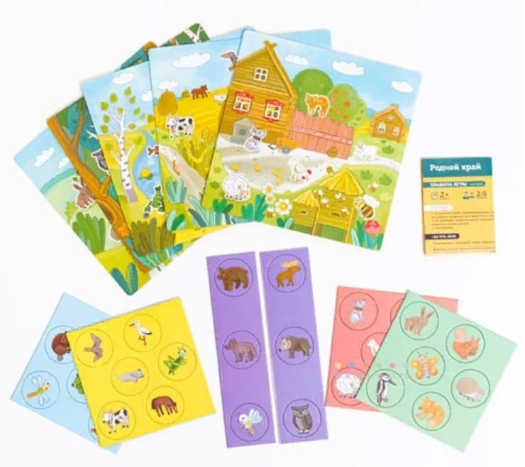 Настольная игра «Родной край» в первую очередь предназначена для малышей, которые только знакомятся с миром животных. А уже во вторую – для получения положительных эмоций во время посиделок за лото. Здесь всё выполнено в таком красивом рисованном стиле, что волей-неволей начинаешь любоваться пейзажами и обитателями этих дворов, домиков.