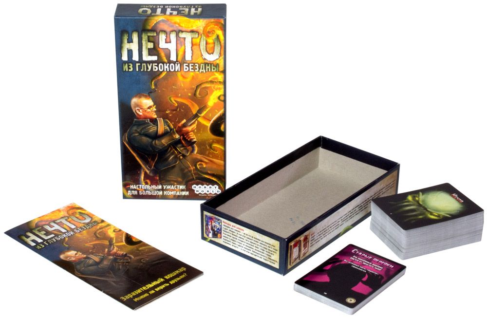 «Нечто из глубокой бездны» - увлекательная настольная игра для большой и дружной компании из 4-12 смельчаков, в которой им придется встретиться с древним ужасом и победить его. Основная цель - определить игрока, являющегося этим Нечто.
