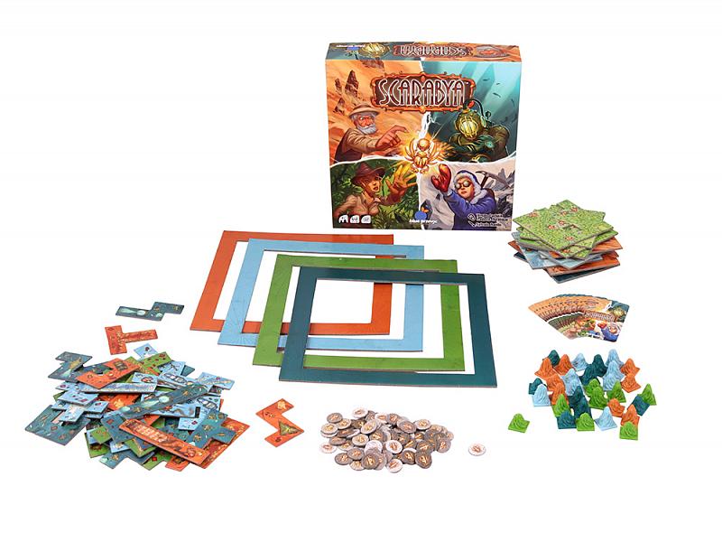 В настольной игре «Скарабеи» игрокам предстоит возглавить археологические раскопки для того, чтобы отыскать погребенную под песками времен древнюю цивилизацию Скарабию. Сумеете откопать на вверенном вам участке наибольшее количество жуков-скарабеев - станете победителем.
