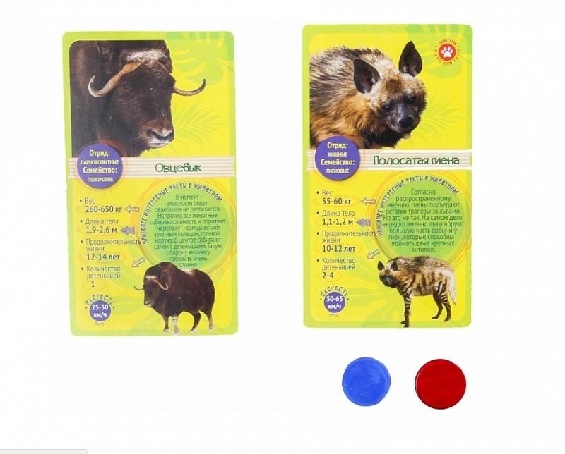 В самом простом варианте, вам необходимо будет сравнивать животных между собой по одному из параметров. Сначала в центр выкладывается карточка и задается параметр для сравнения. Остальные должны по очереди выложить карту, где бы этот параметр был больше. Тот, кто выложит самого сильного, тяжелого или быстрого, может забрать себе все выложенные карточки.