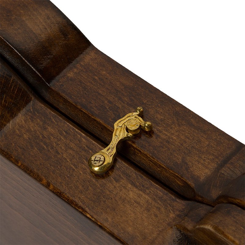 - Верхняя крышка украшена утонченной резьбой с богатой фактурой
