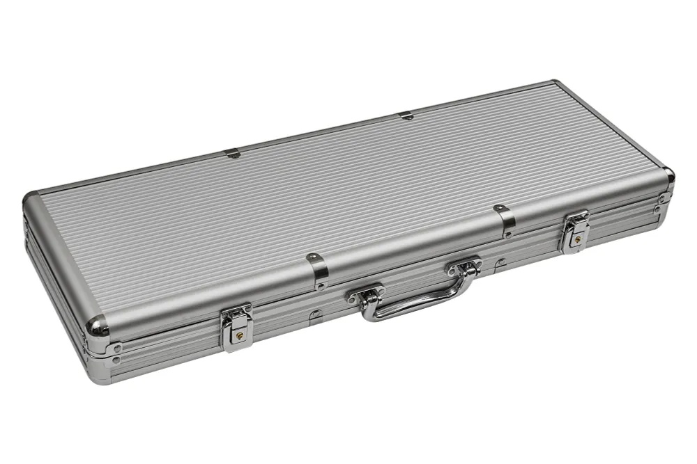 Элементы набора уложены в прочный кейс, сделанный из металла. Фурнитура, которой он дополнен, также металлическая, износостойкая и надежная.