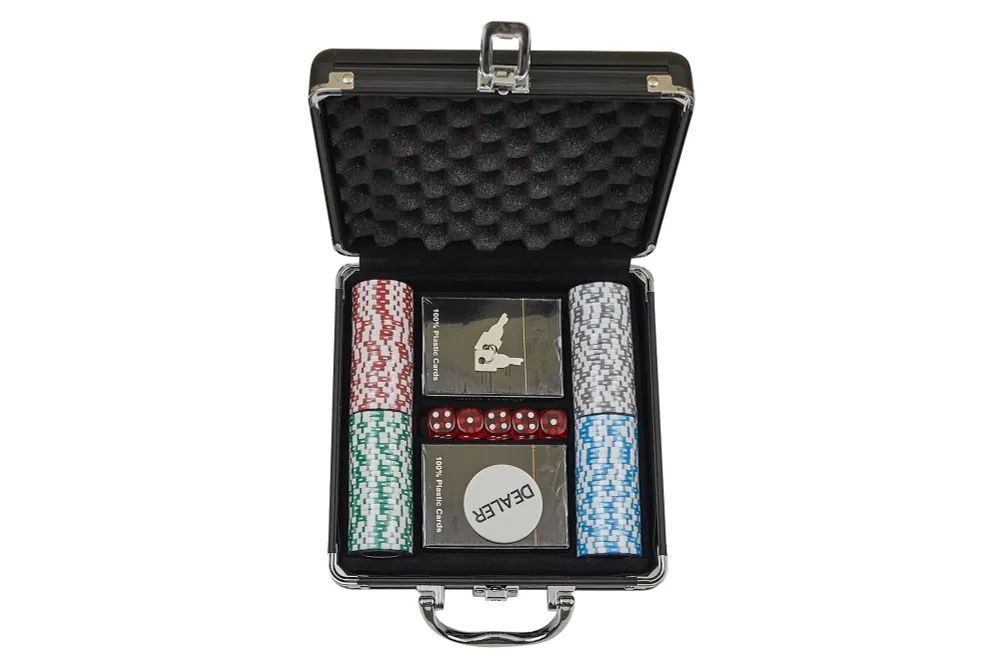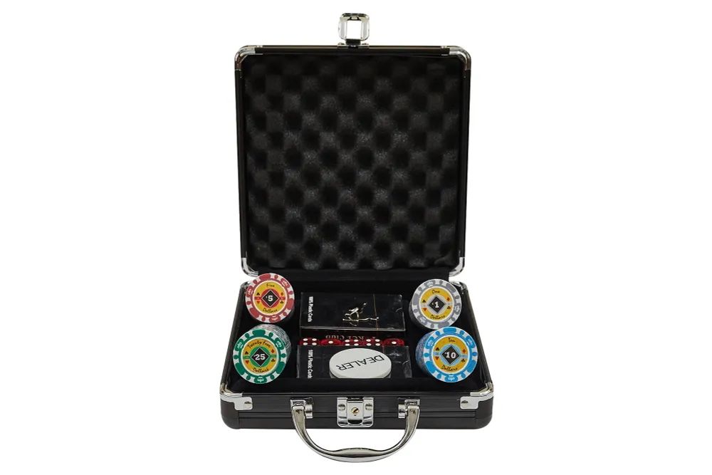 Набор для покера Crown на 100 фишек, включающий в себя все необходимое для классической карточной игры, позволяет устроить казино даже у себя дома. Здесь все соответствует заданным мировым покерным стандартам: фишки весят по 14 грамм, карты и кубики выполнены в классических размерах. Все это упаковано в стильный и удобный кейс из прочного металла, благодаря чему набор легко брать с собой даже в поездки, а при хранении ничего не растеряется.