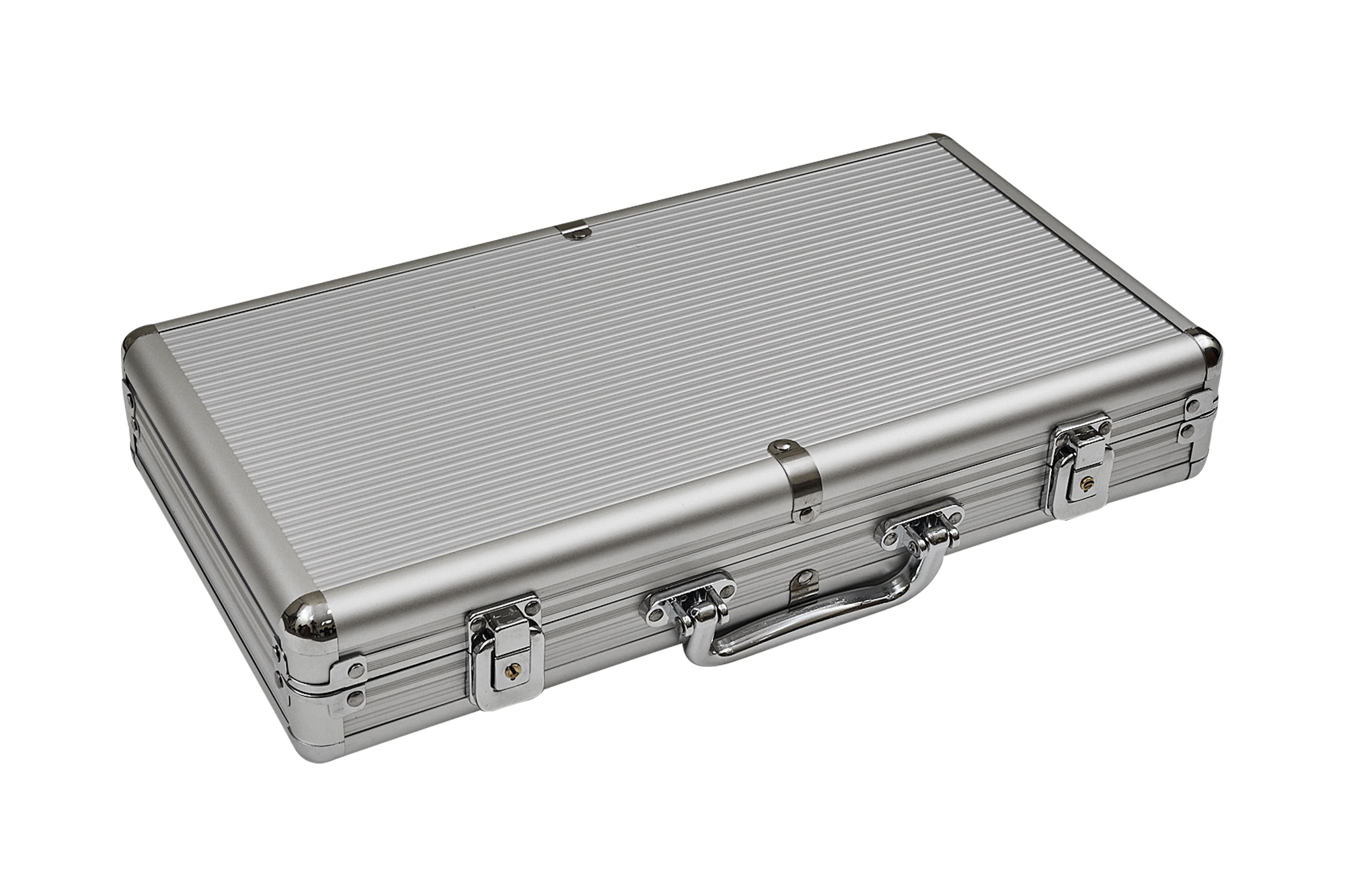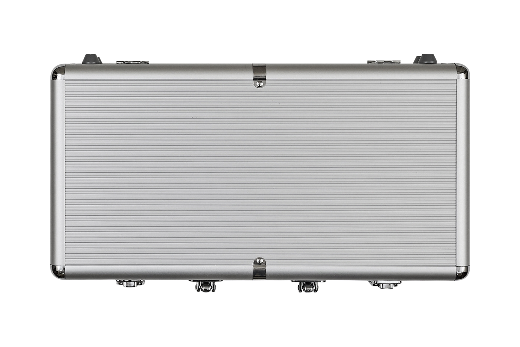 Упакован комплект в прочный кейс. Сделан он из металла и дополнен металлической фурнитурой. Такая упаковка обеспечивает удобство и безопасность хранения.