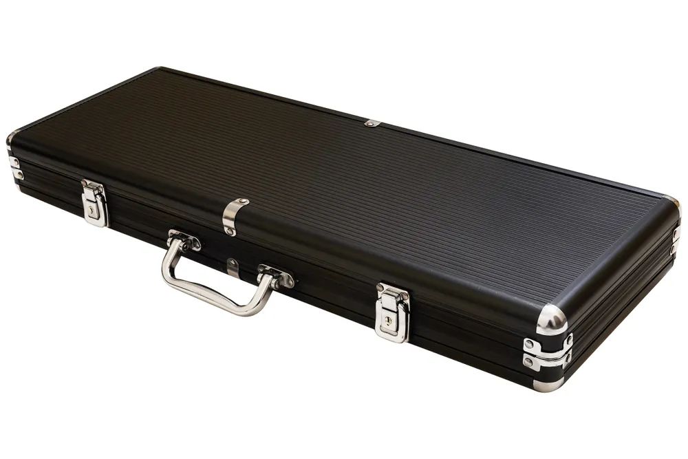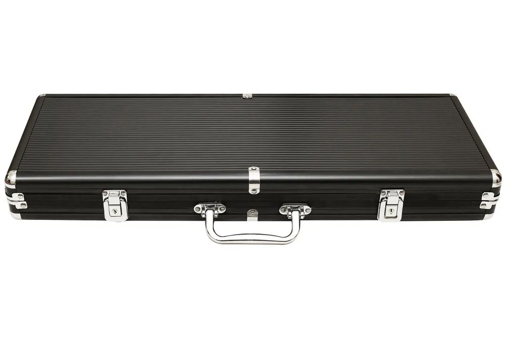 Карты в наборе выполнены из высококачественного пластика. Они сделаны в стандартном размере, благодаря чему их удобно держать в руке. Фишки из пластика также сделали в стандартном размере. Кейс выполнен из прочного металла и дополнен надежной и устойчивой к износу металлической фурнитурой.