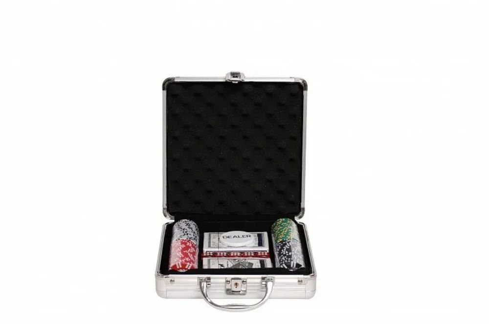 Вы любите покер и хотите, чтобы у Вас была возможность играть в него в любое время? Тогда Вам стоит купить набор для покера Royal Flush на 100 фишек. В стальной кейс собраны яркие фишки номиналом 1, 5,25 и 100, фишка дилера, игральные кости, а также качественные карты. Такой покерный набор удобно брать с собой, ведь весит от чуть больше полутора килограмма.