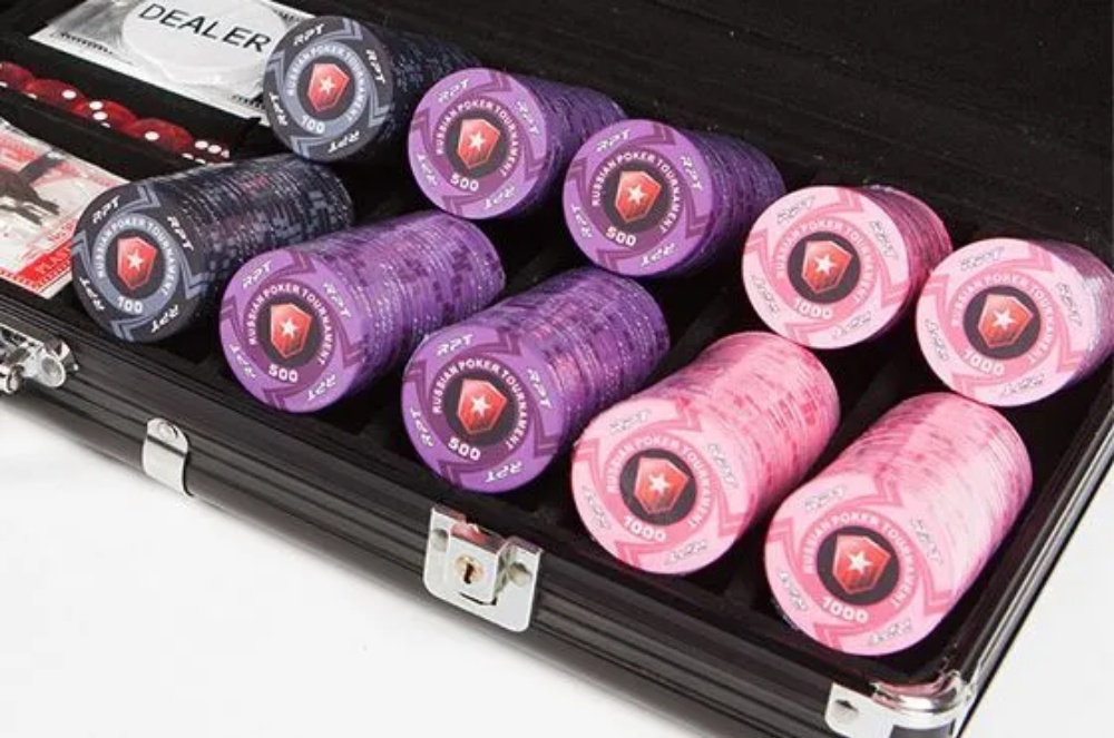 Представленный набор для покера выполнен известным китайским изготовителем игорных комплектов - компанией Partida. Он включает 500 фишек общим номиналом 166 750. Среди 500имеются фишки с номиналом 1000 очков (сто штук розового цвета), 500 единиц (100 штук фиолетового цвета), 100 очков (125 штук темно-серого цвета), 50 единиц (50 штук ярко-синего цвета), 20 очков (50 штук желтого цвета) и 10 единиц (75 штук серого цвета). Все эти фишки уложены в десять рядов в специальных желобах в удобном, легком и прочном металлическом кейсе черного цвета. По центру кейса расположены места для двух колод пластиковых карт, а также для пяти костей и фишки дилера.