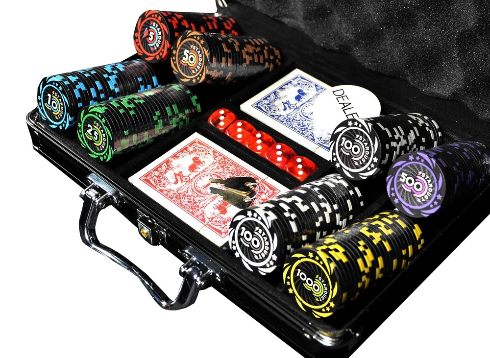 | Номинал фишек | 5-25шт, 10-25шт, 25-25шт, 50-25шт, 100-50шт, 500-25шт, 1000-25шт |