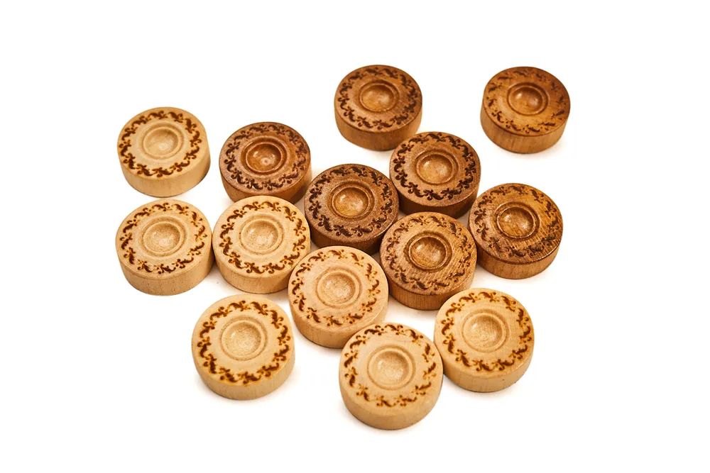 Набор фишек для нард «Узор 1» Haleyan - достойным игрокам только качественные изделия. Бук часто применяется Кареном Халеяном при создании досок, так как это надёжный и одновременно красивый материал. Эти фишки для нард тоже сделаны из него, поэтому прослужат многие тысячи партий.