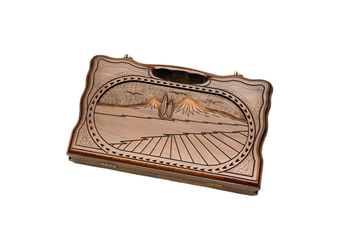 Самый младший представитель серии Арарат от известного мастера изготовления игровых досок - Карена Халеяна. В длину они всего лишь 30 см, а если вам хочется большего, то рекомендуем обратить внимание на средний и большой варианты. Как и всегда мастер вкладывает душу, во время вырезания своих изделий - выглядят они максимально эффектно. Их можно с гордостью преподносить в подарок друзьям, коллегам или начальству, и они гарантированно останутся довольны.