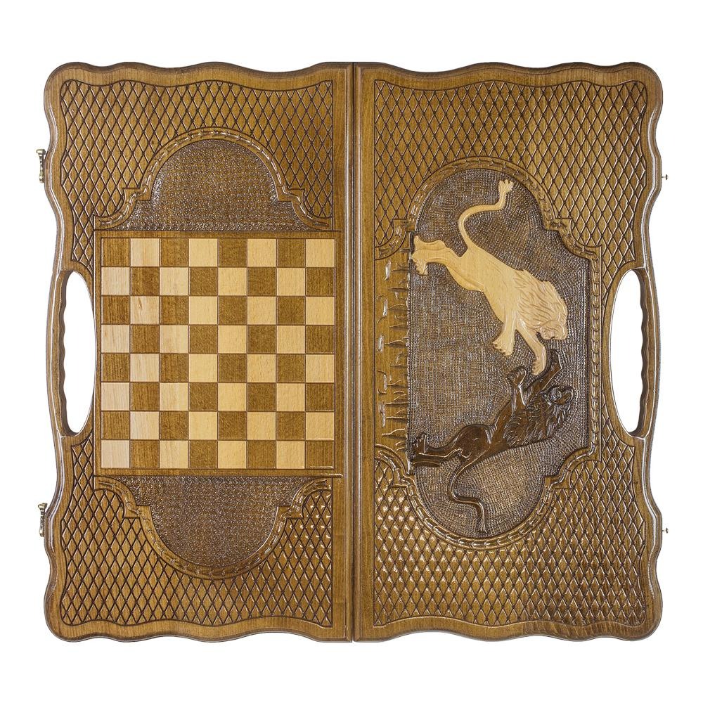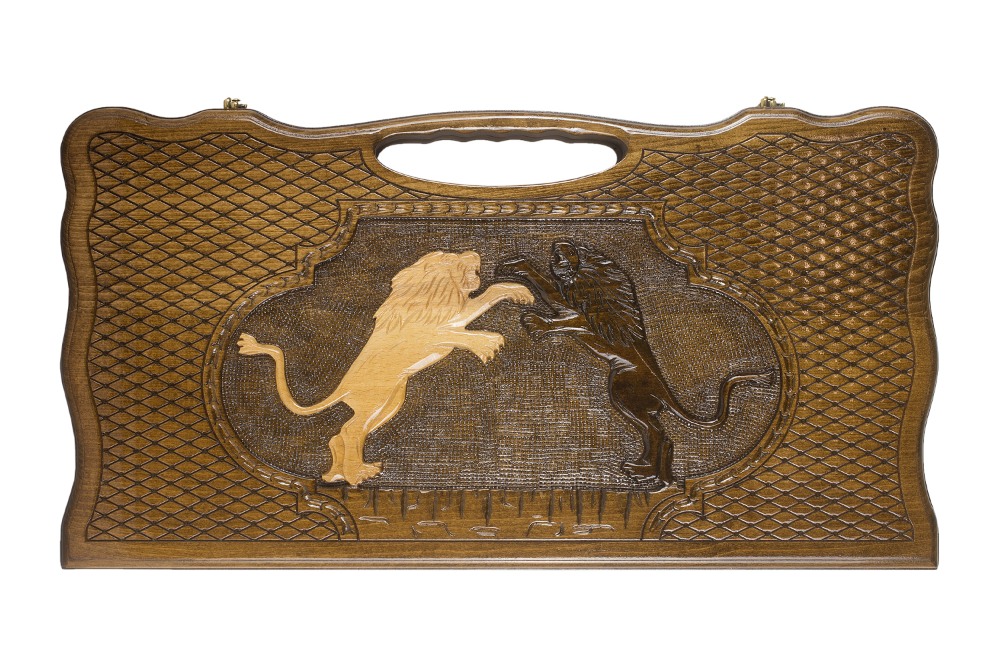 Нарды резные "Битва львов" с ручкой 60, Haleyan