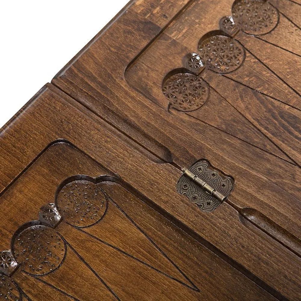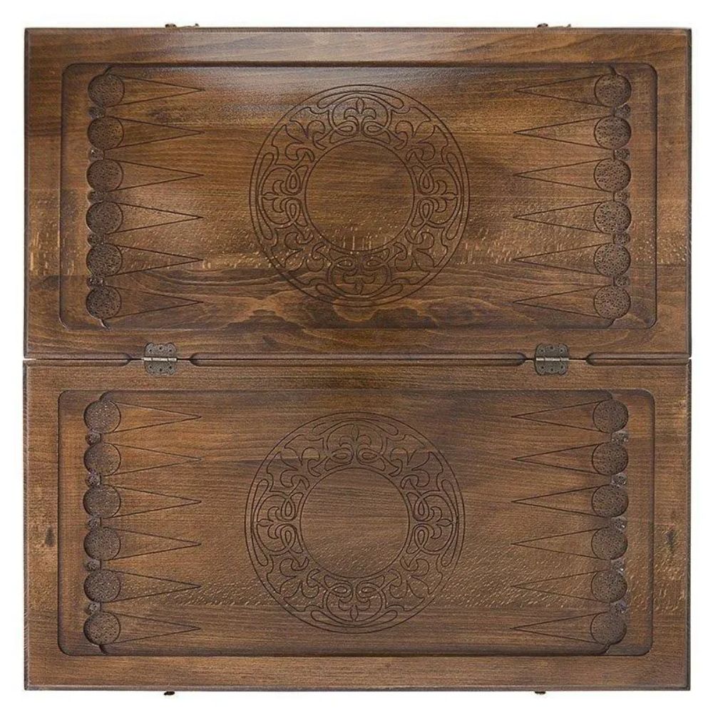 Для производства данной доски берется цельный буковый массив, что обеспечивает высокий показатель прочности. Она точно выдержит ожесточенные партии, когда фишки быстро перемещаются по поверхности и ударяются об нее. Древесина не деформируется при перепадах температуры, а в качестве дополнительной защиты используются несколько слоев лака. Им покрываются все деревянные части, что не дает им впитывать влажность, а также придает изысканного блеска.