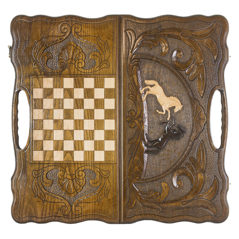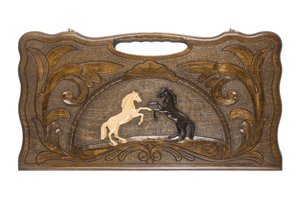 Нарды резные "Две лошади" с ручкой 60, Haleyan